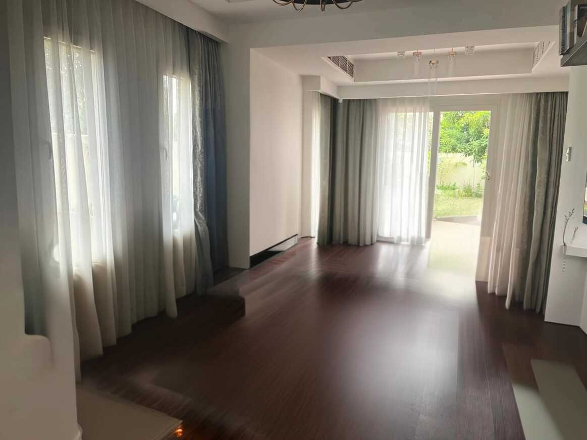 The villa features three spacious bedrooms, three modern bathrooms, bright living and dining areas, and a beautifully landscaped private garden, perfect for family living.